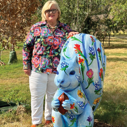 Kitty Keller was asked to be an artist on the Seguin Squirrel Trail - a public art project of the Seguin Commission on the Arts. So Kitty created Flora! Flora was sponsored by Don & Marty Keil. The artist is Kitty Keller.