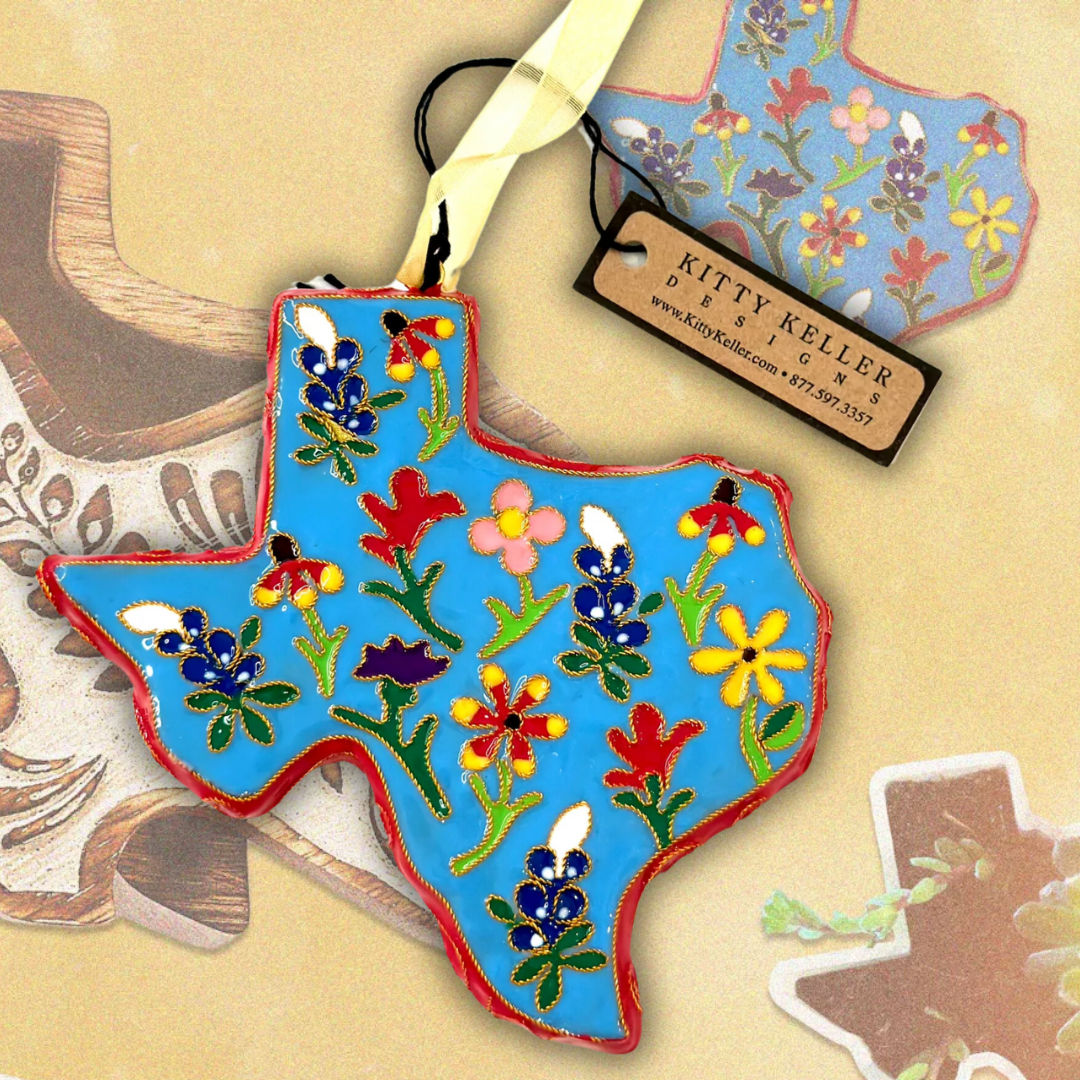 Kitty's Texas shaped ornament was featured among other texas shaped holiday gift ideas for the Christmas Season.